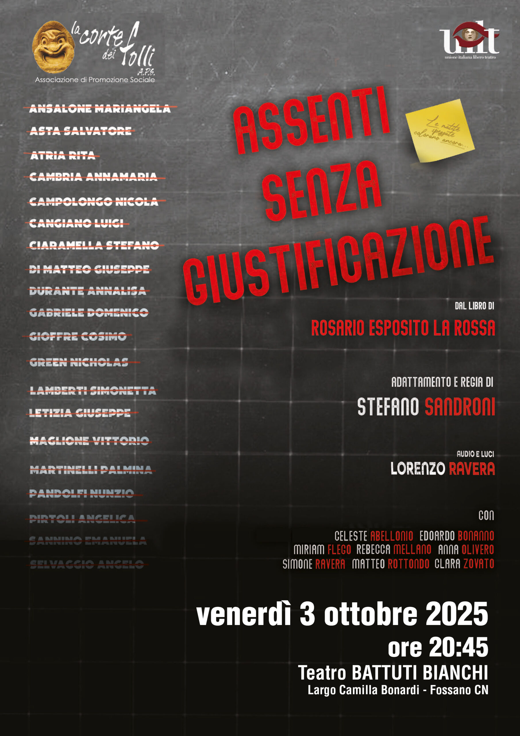 a grande richiesta SI REPLICAmartedì 13 febbraio 2024 ore 20:45giovedì 15 gennaio 2024 ore 20:45 TEATRO BATTUTI BIANCHILargo Camilla Bonardi - Fossano (CN) IL CAST (in ordine di presenza in scena) Agnese – la vedova – BASILIA COSTANTINOAssunta – la suocera – LUCIA...